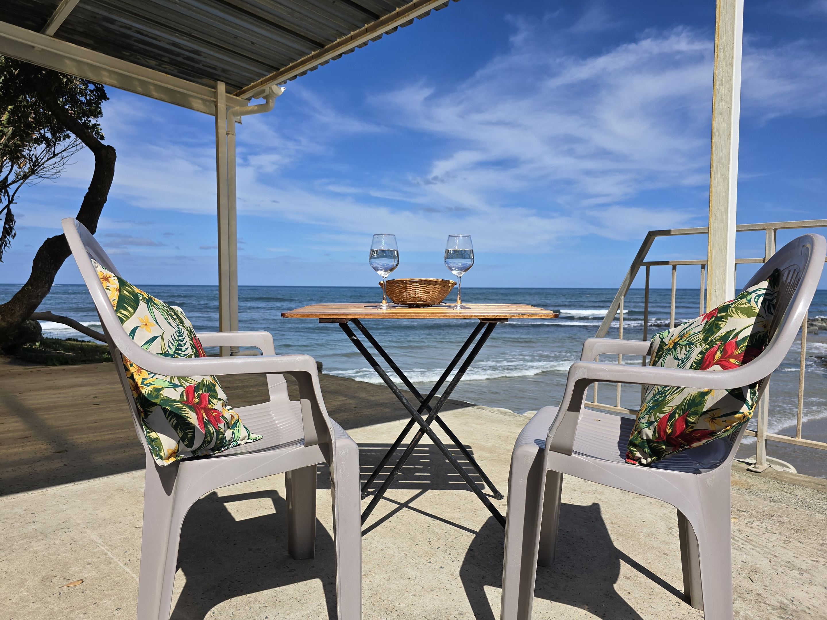 The lovely patio has a build in braai, and has natural view where bushbuck can often be seen.